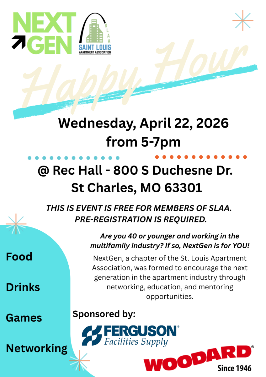 By registering and entering this event, you are authorizing the St. Louis Apartment Association to reproduce, copyright, use, publish, and/or display, now and hereafter, your personal image, name, likeness, photograph(s), testimonial for any legitimate association purpose for print/electronic usage.