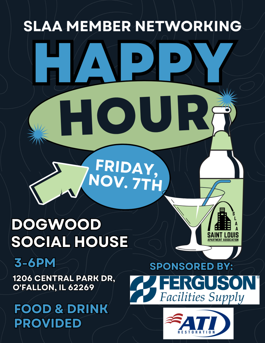 You asked, and we listened! Join us for an SLAA Member Networking Happy Hour on Friday, November 7th, created especially for members who operate properties and do business on the Illinois side.