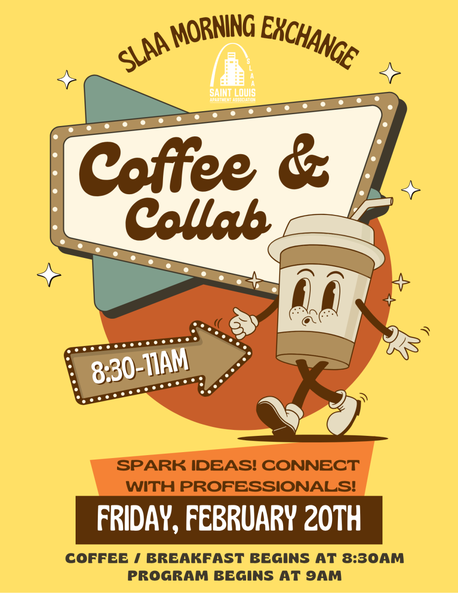 Start your morning with great coffee, conversation, and collaboration! The SLAA Morning Exchange: Coffee & Collab is a quarterly event designed to spark ideas, inspire discussion, and connect professionals across the multifamily industry. Each session features a guest speaker who leads an interactive, guided conversation on timely topics, followed by roundtable discussions that encourage participants to share insights and strategies.